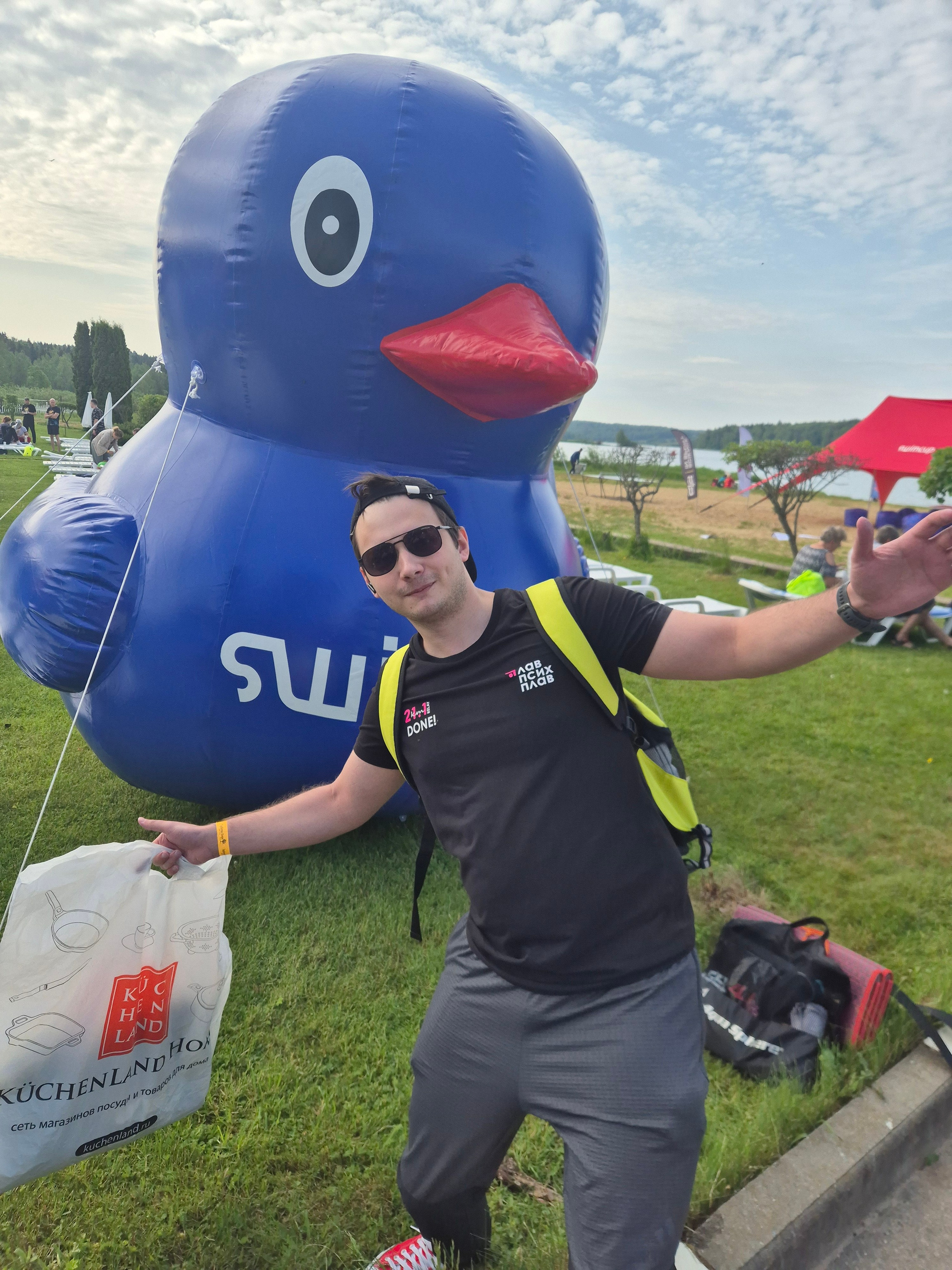 Один из первых «разминочных» стартов сезона на открытой воде проводился SwimCuр’ом недалеко от Сергиев-Посада, на Торбеевом озере. Плыли кто 1, а кто — 2 круга по 2 км. Особый интерес старту придавала последующая поездка на дачу в 8 км на шашлыки. Наконец и мама добралась посмотреть, что же это такое — плавание на открытой воде.