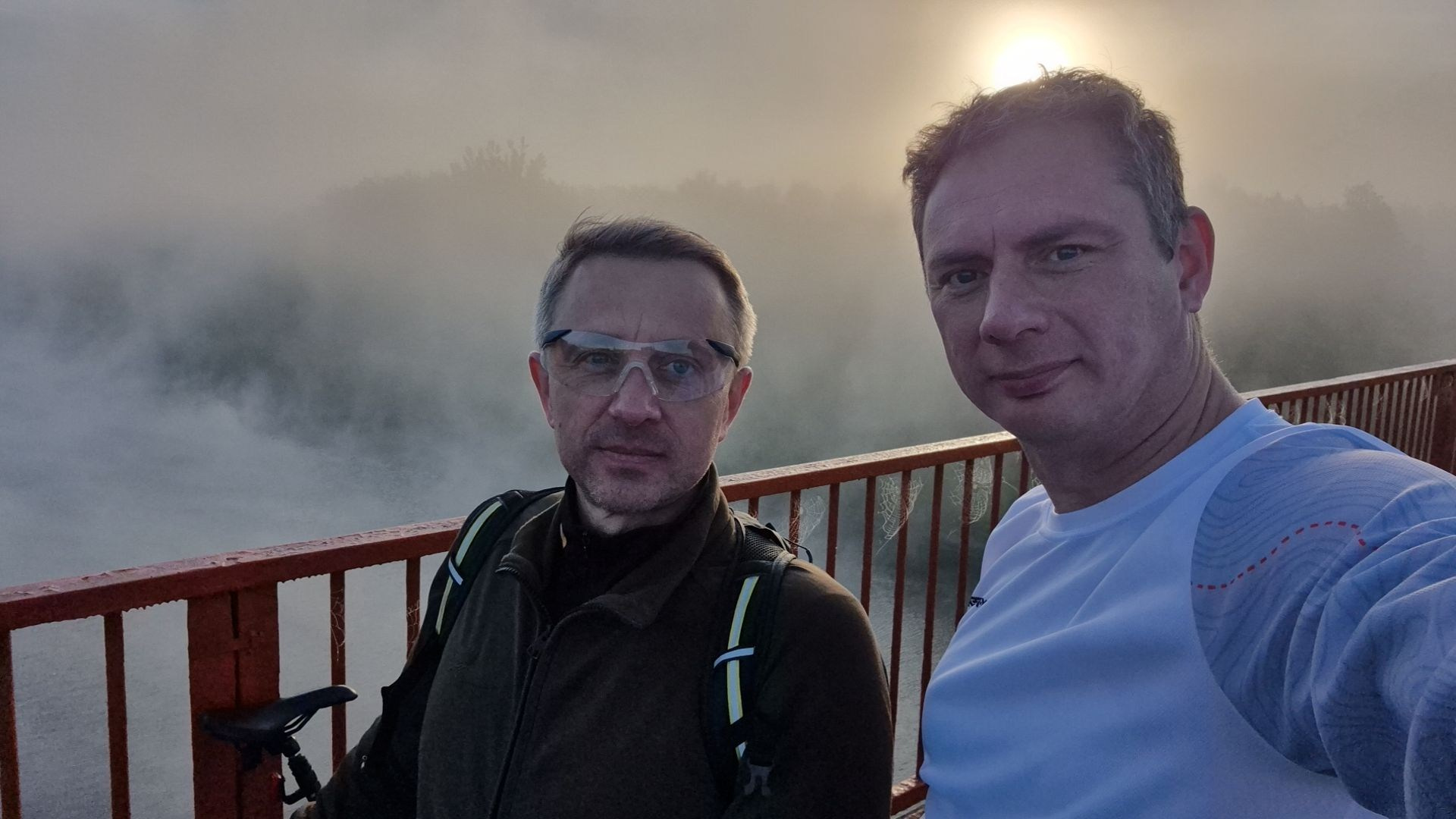 Лето и отпуск — позади. Когда туманно и на душе и в природе — 60 км за 3.5 ч на велосипеде с другом (Андреем Великановым) — и сразу все становится солнечным. Правда змеи вокруг… но и они не мешают кайфануть.